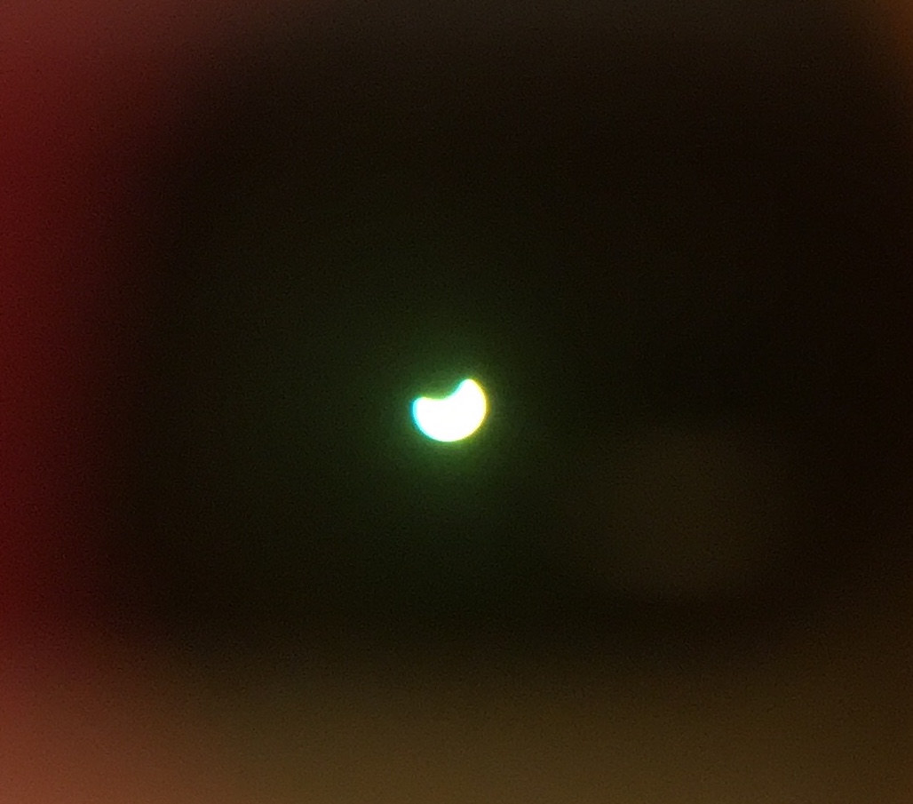 今日の午前、部分日食がありましたね。 スマホに日食観察用グラスをくっつけて強引に写真撮ってみました。